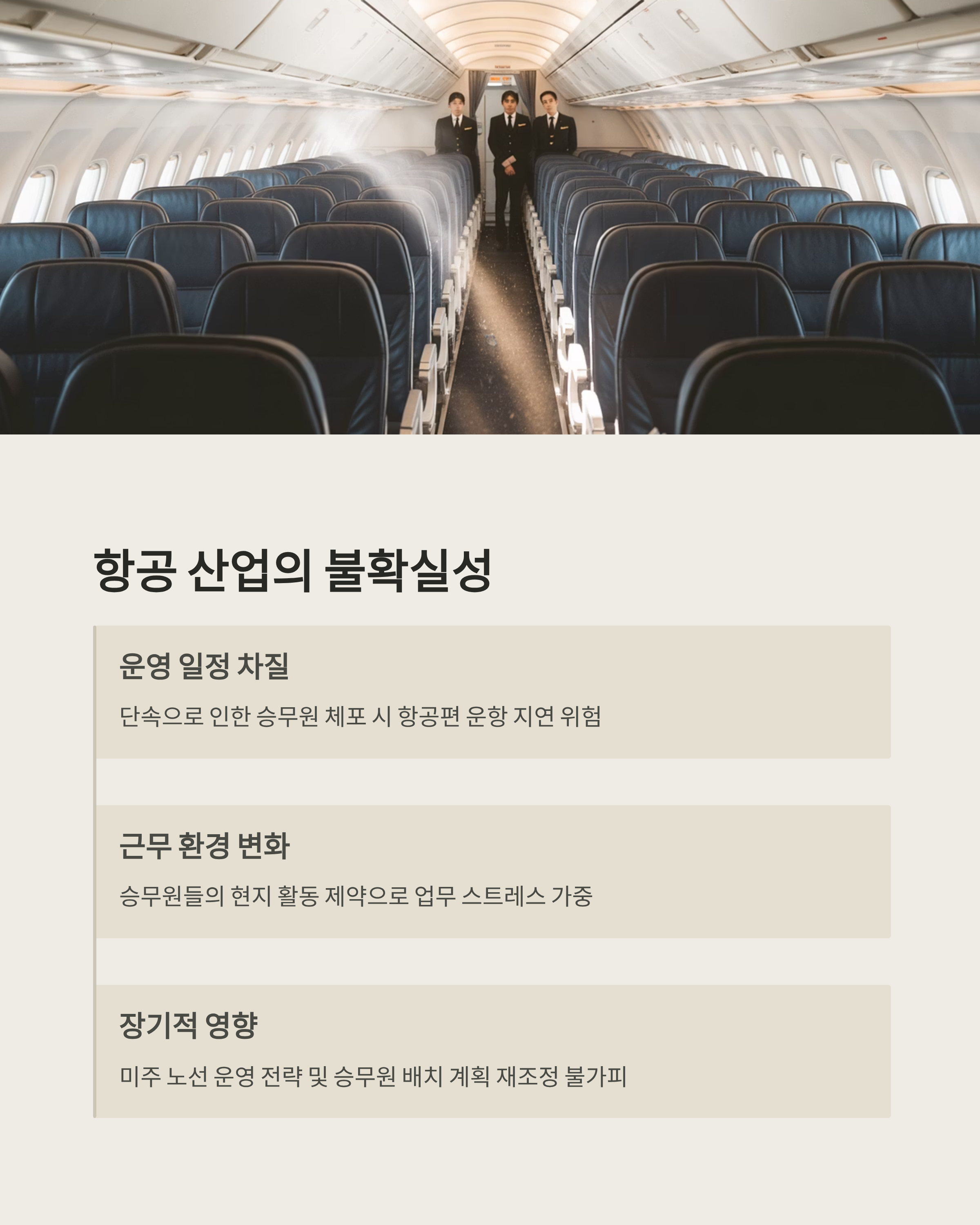 단순히 체류 문제를 넘어, 항공업계 전체가 운영 일정에 차질을 빚을 수 있는 위험이 커지고 있습니다. 단속 강화가 장기화된다면, 항공사들의 운영 전략과 승무원들의 근무 환경에도 영향을 미칠 수밖에 없습니다.