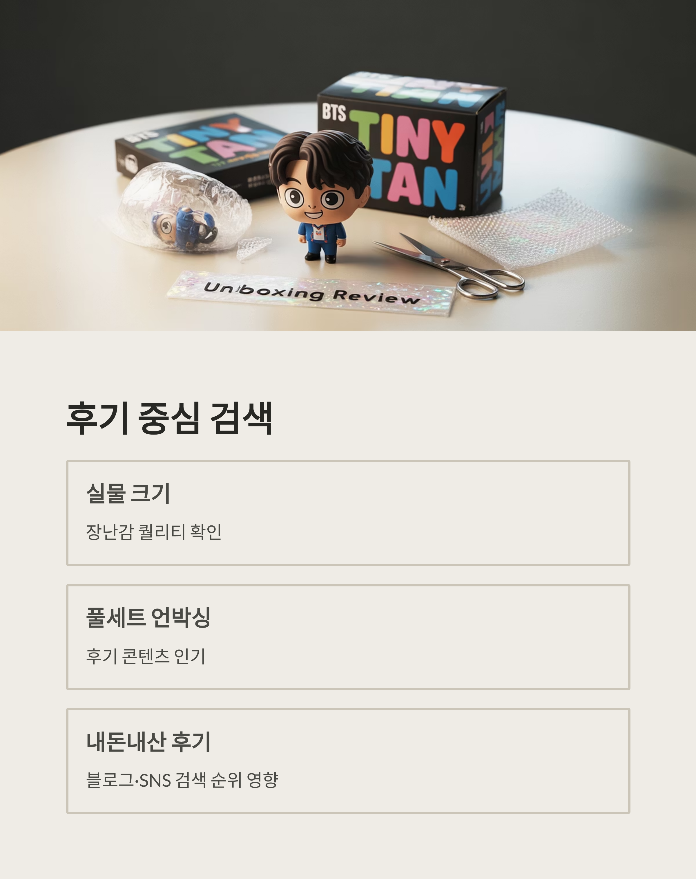 실물 크기와 장난감 퀄리티, 풀세트 언박싱 후기가 주요 검색 포인트였습니다. 블로그와 SNS의 내돈내산 후기가 큰 영향을 미쳤으며, 팬들은 "나는 방탄 팬이다 너무 기대 된다"라는 글귀와 함께 인증 사진을 공유하고 있습니다.