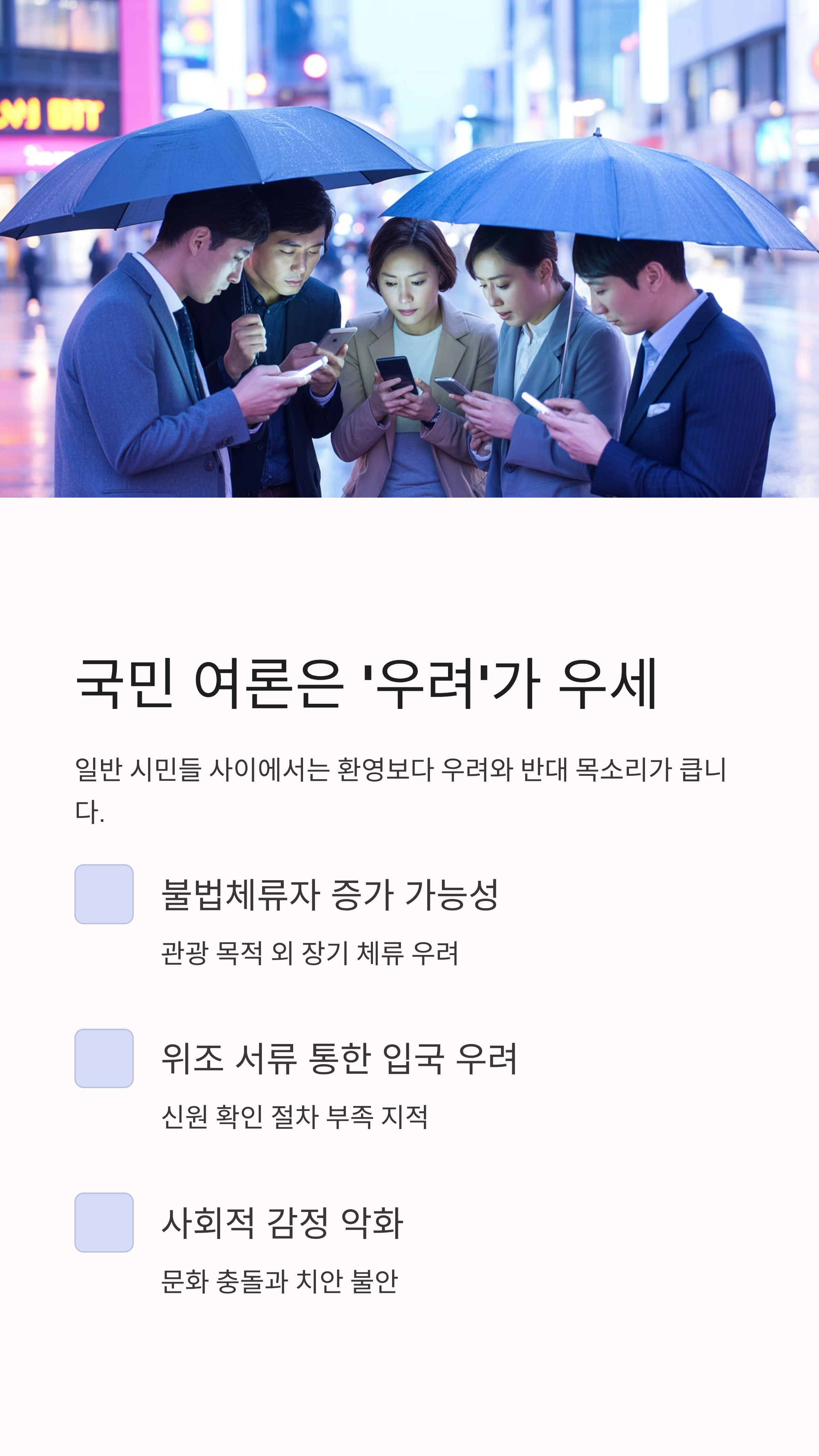 치안 불안, 불법체류 증가, 감정적 반발 등 현실적인 우려도 커지는 상황.