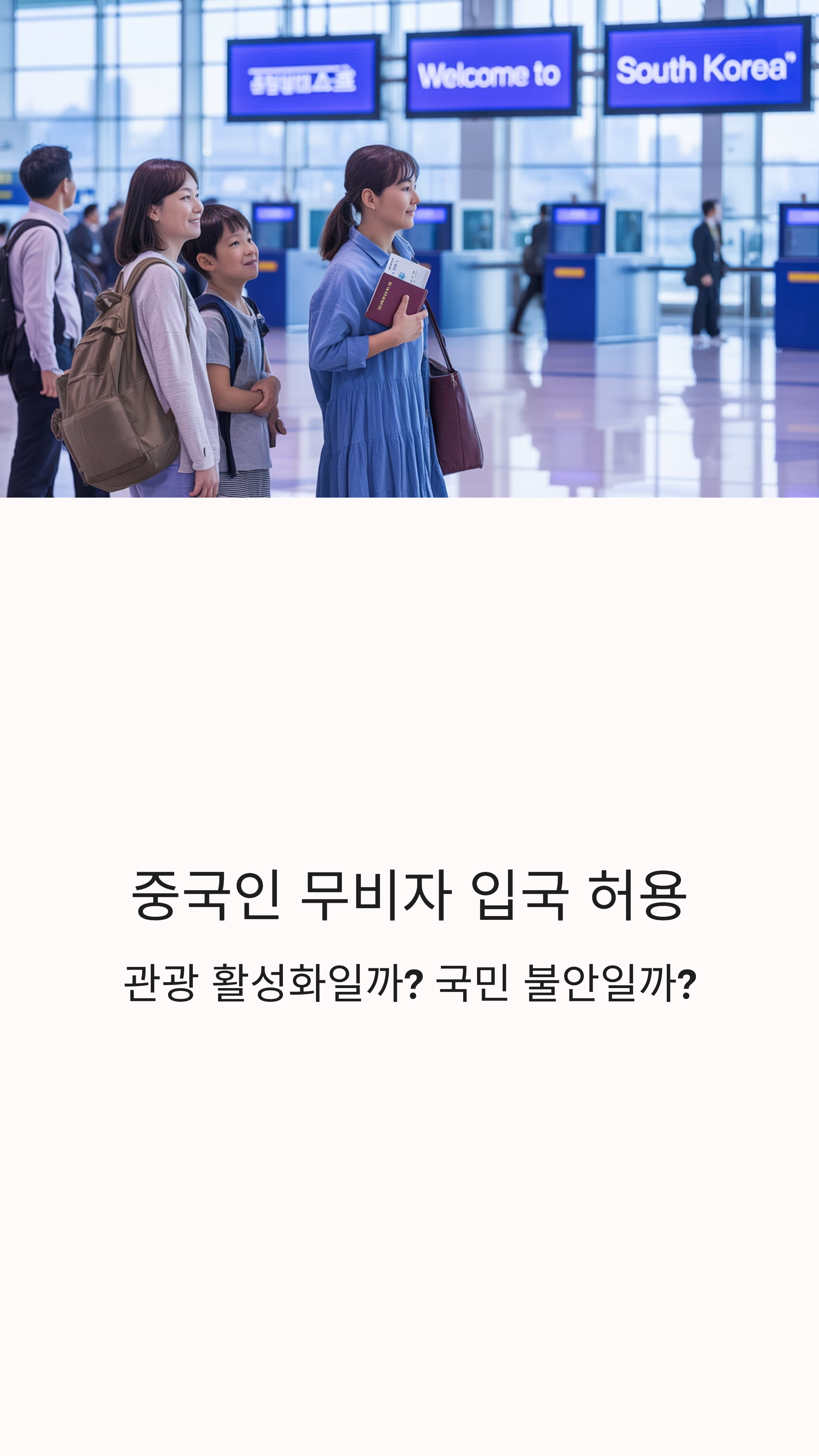 #중국인무비자입국 #관광활성화논란 #무비자입국반대청원 #국민불안증가 #불법체류우려 #관광경제효과 중국관광객입국, 한국치