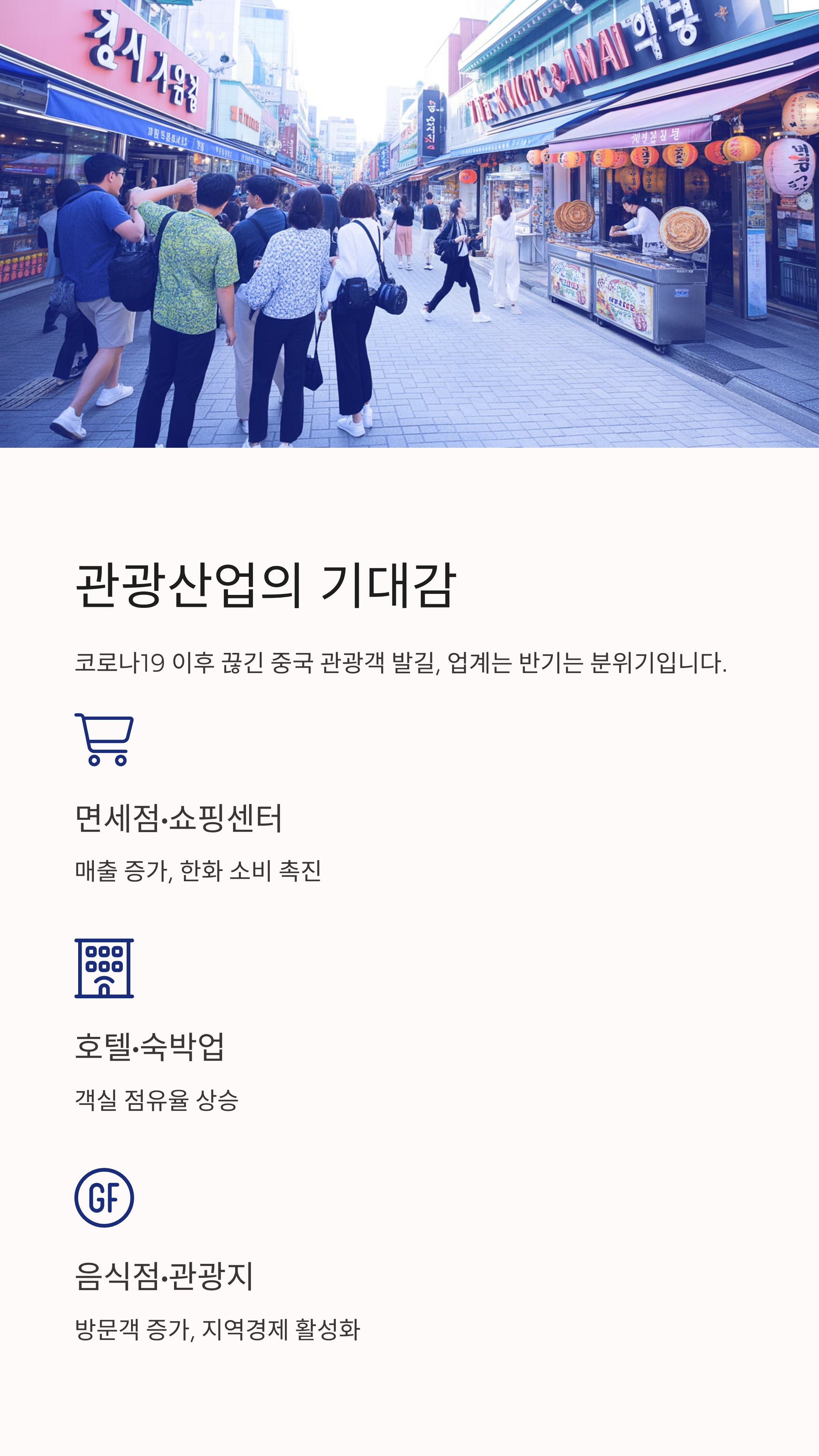 | 경제 | 관광산업 회복, 내수 진작 | 지역 편중, 내국인 소비 위축 우려 |