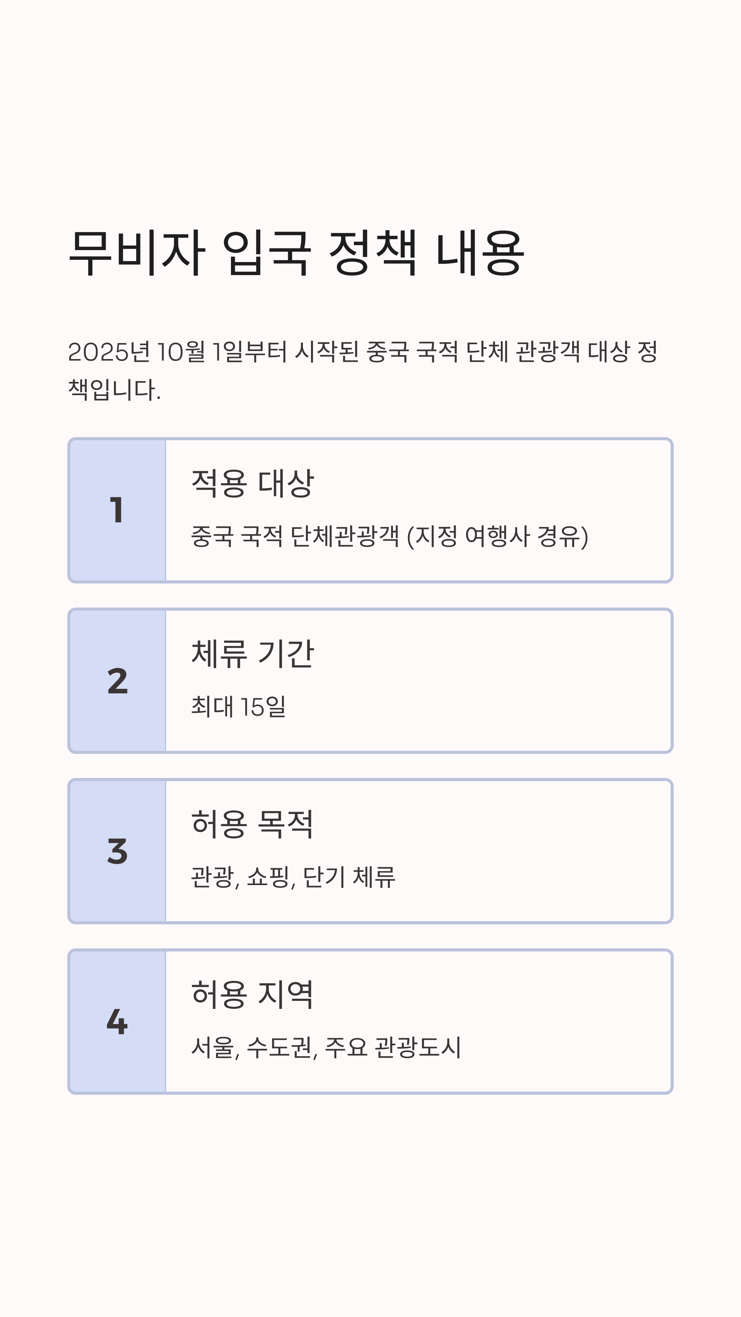 - 적용 대상: 중국 국적 단체관광객(지정된 여행사 경유)